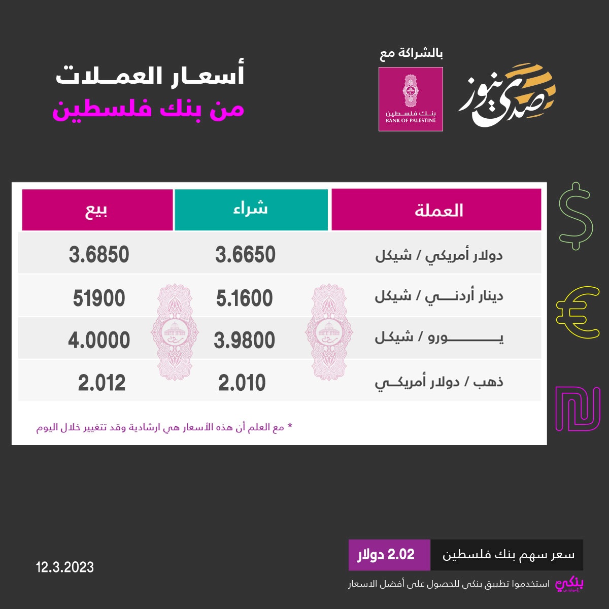 صدى نيوز - إليكم أسعار صرف العملات مقابل الشيكل، لليوم السبت الثالث عشر من أيار الجاري: