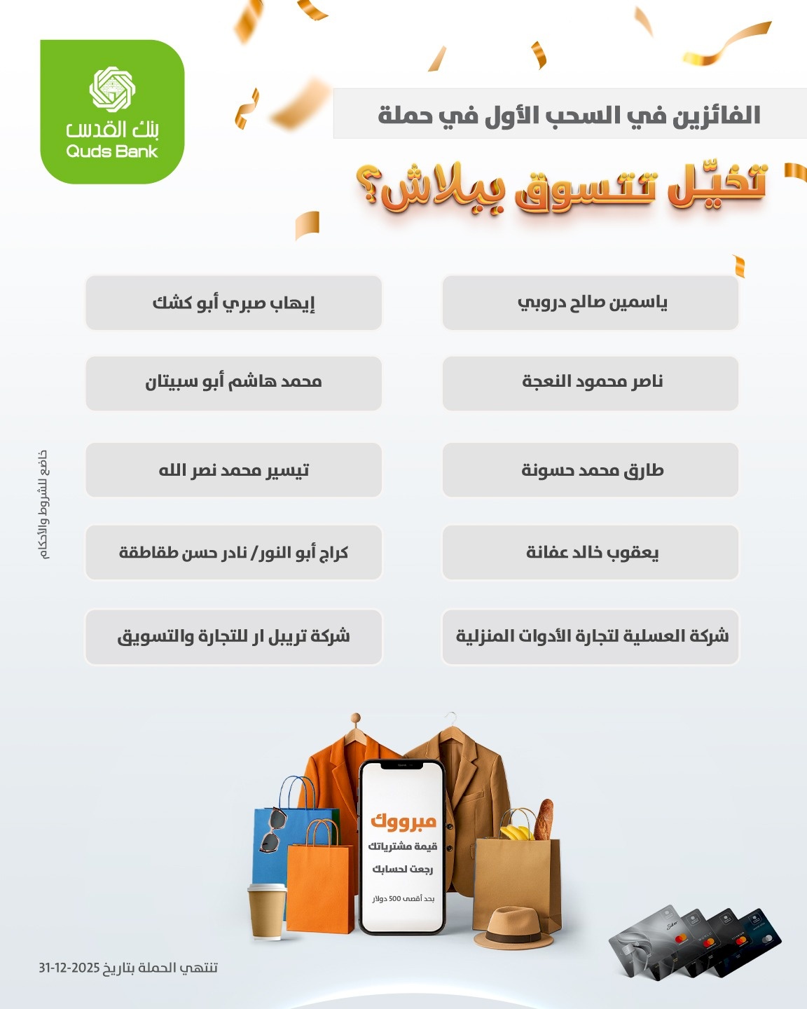 بنك القدس يعلن عن أسماء الفائزين في السحب الأول ضمن حملة "تخيل تتسوق ببلاش"