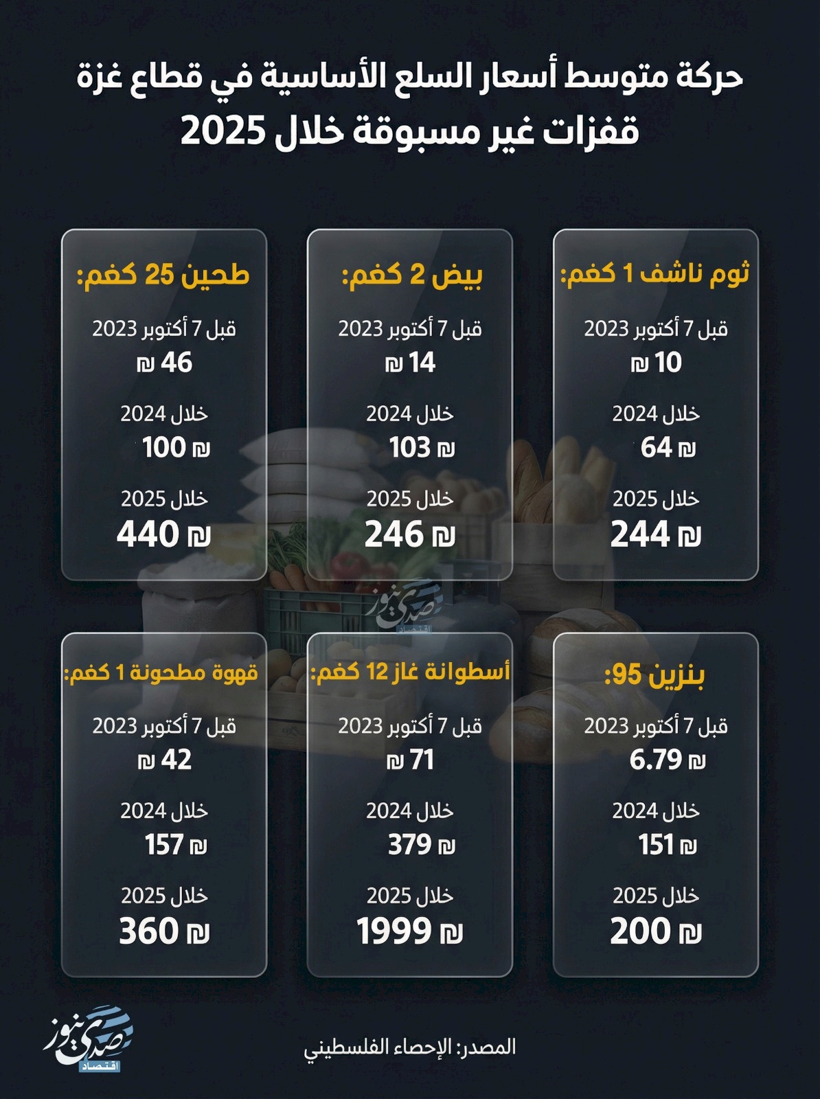 إنفوغراف: حركة متوسط أسعار السلع الأساسية في قطاع غزة.. قفزات غير مسبوقة خلال 2025
