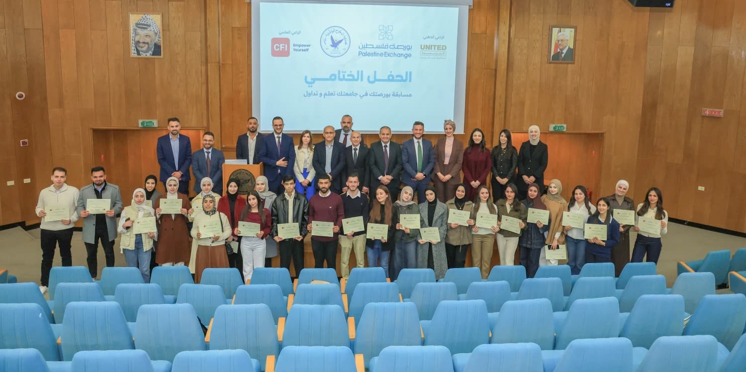 صدى نيوز -اختتمت بورصة فلسطين بالتعاون مع كلية الأعمال والاتصال في جامعة النجاح الوطنية، فعاليات مسابقة "بورصتك في جامعتك.. تعلم وتداول" التي انطلقت فعاليتها مع بداية كانون أول العام 2025 كتجربة تعليمية نوعية نقلت الطلبة من مقاعد الدراسة إلى قلب السوق المالي، ومن التعلّم النظري إلى ممارسة التداول واتخاذ القرار الاستثماري الصحيح.