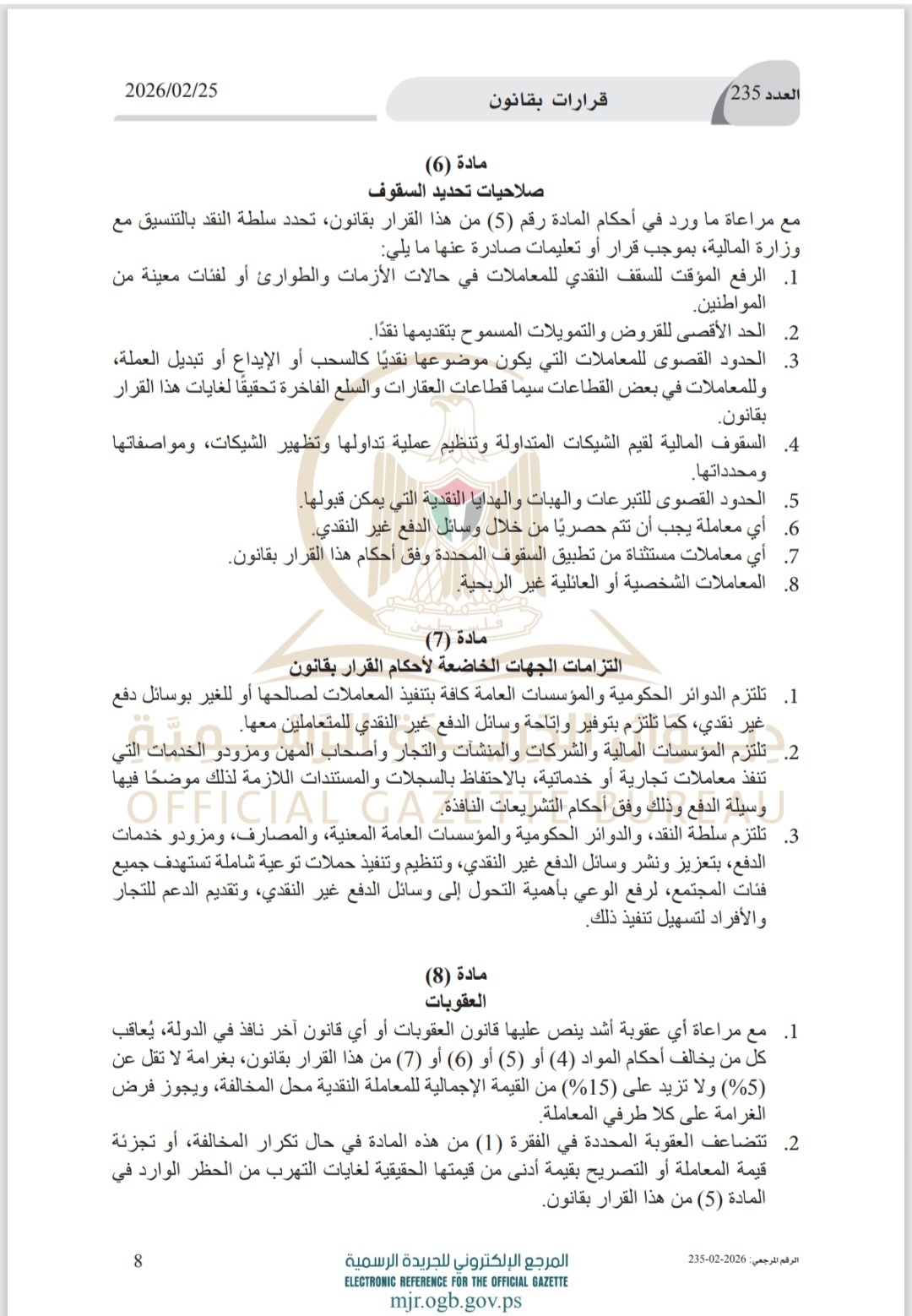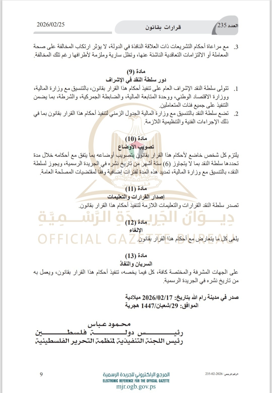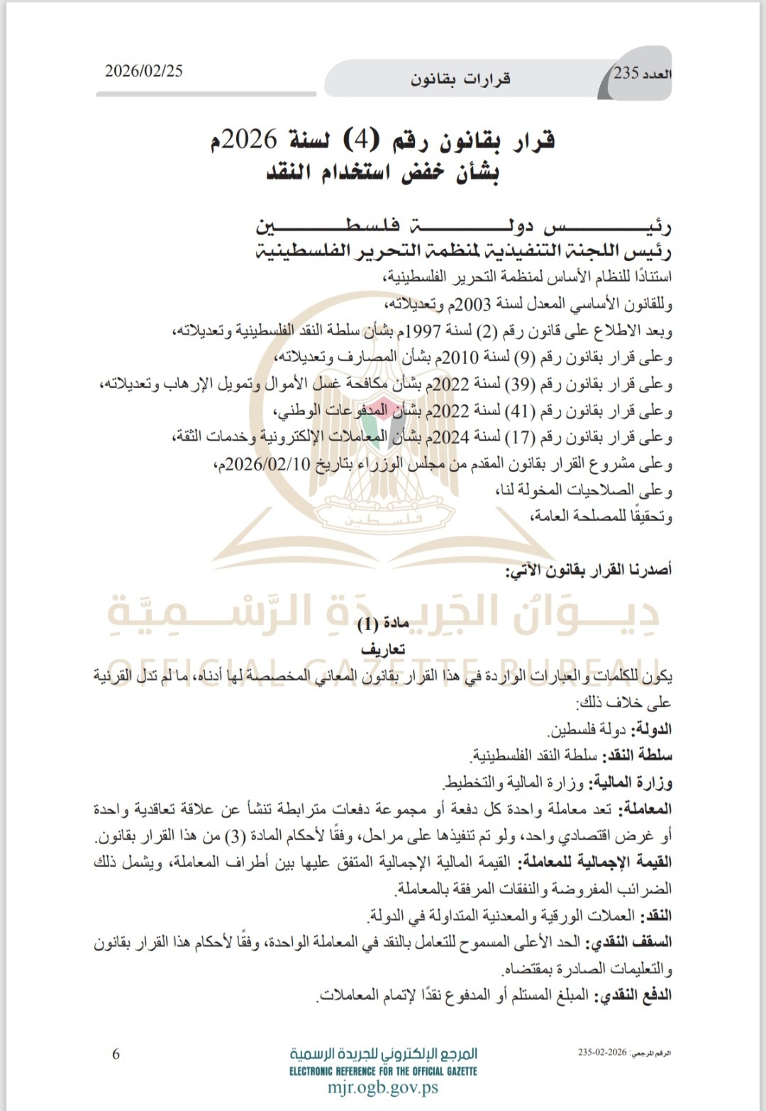 صدى نيوز -أصدر الرئيس محمود عباس قرارا بقانون بشأن خفض استخدام النقد.