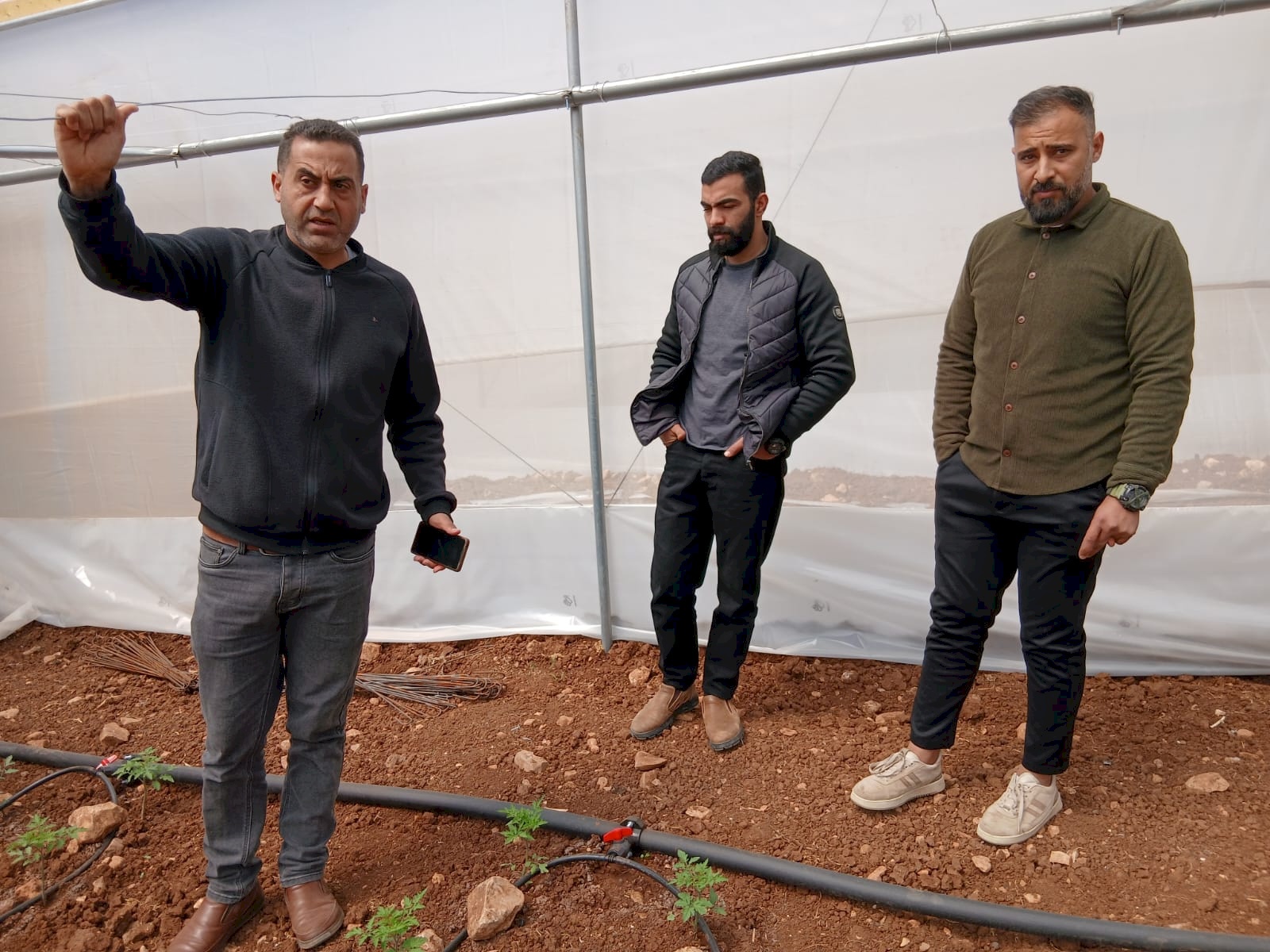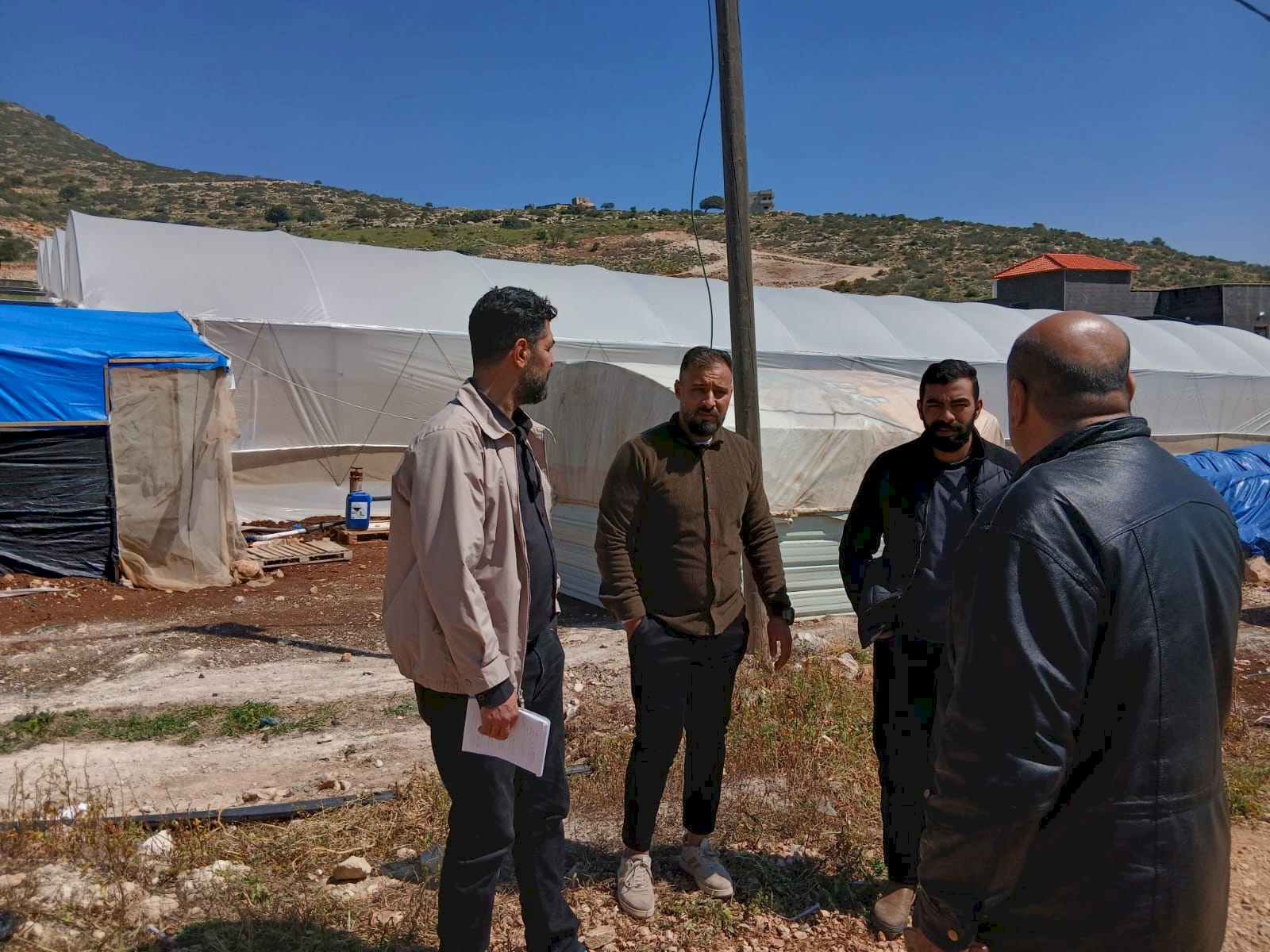 في بداية الجولة الميدانية تم التوجه إلى منطقة عقبة تياسير لزيارة مشروع مدخلات انتاج نباتي من خلال توفير خطوط مياه وشبكات ري وأسمدة ومبيدات بقيمة نحو 20 ألف يورو، لمساحة 20 دونم لصالح المزارع غسان ضراغمه، والذي تم تنفيذ هذا المشروع لصالحه كتعويض عن اعتداء جيش الاحتلال على محاصيله الزراعية بمساحة 120 دونم في العام 2019، وقد شكل هذا التمويل للمزارع غسان نقطة انطلاق جديدة استطاع من خلالها التوجه إلى زراعات جديدة كالخضار المحمية والعنب واستخدام أساليب زراعية حديثة ساعدت في الحصول على انتاج تنافسي بالجودة والكمية كما ساهم هذا المشروع بتوفير أكثر من 20 فرصة عمل أصبح لها مصدر رزق تعتاش من خلاله.
