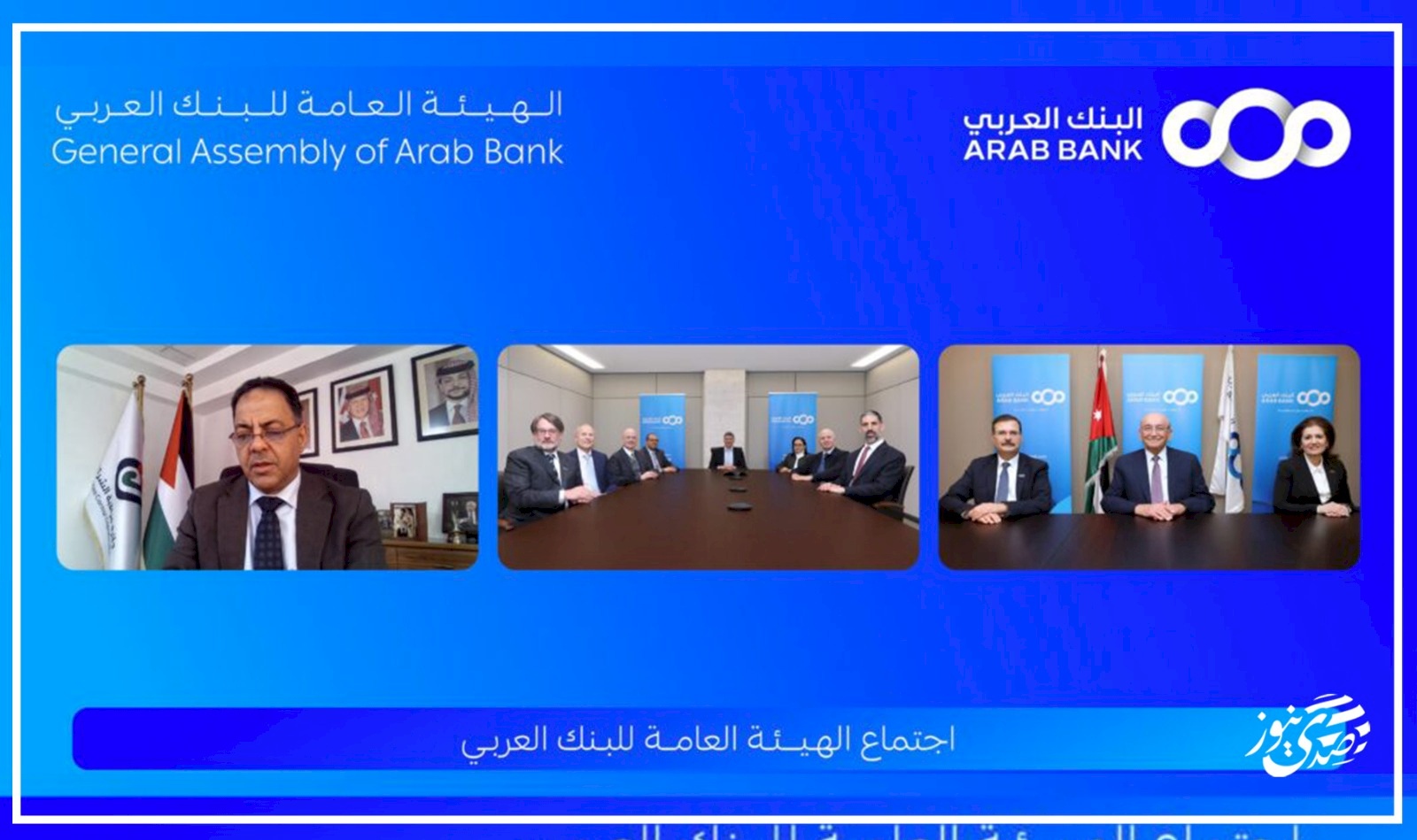 صدى نيوز - عقدت الهيئـة العامـة العادية لمساهمي البنك العربي اجتماعها بتاريخ 26/3/2026 بواسطة وسيلة الاتصال المرئي والإلكتروني، برئاسة صبيح المصري – رئيس مجلس الإدارة وبحضور أعضاء مجلس الإدارة والمدير العام التنفيذي ومساهمين يحملون أسهما «أصالة وإنابة ووكالة» يشكلون حوالي 80.32% من رأس المال، كما وحضر الاجتماع مراقب عام الشركات الدكتور وائل العرموطي ومندوبي البنك المركزي الأردني.