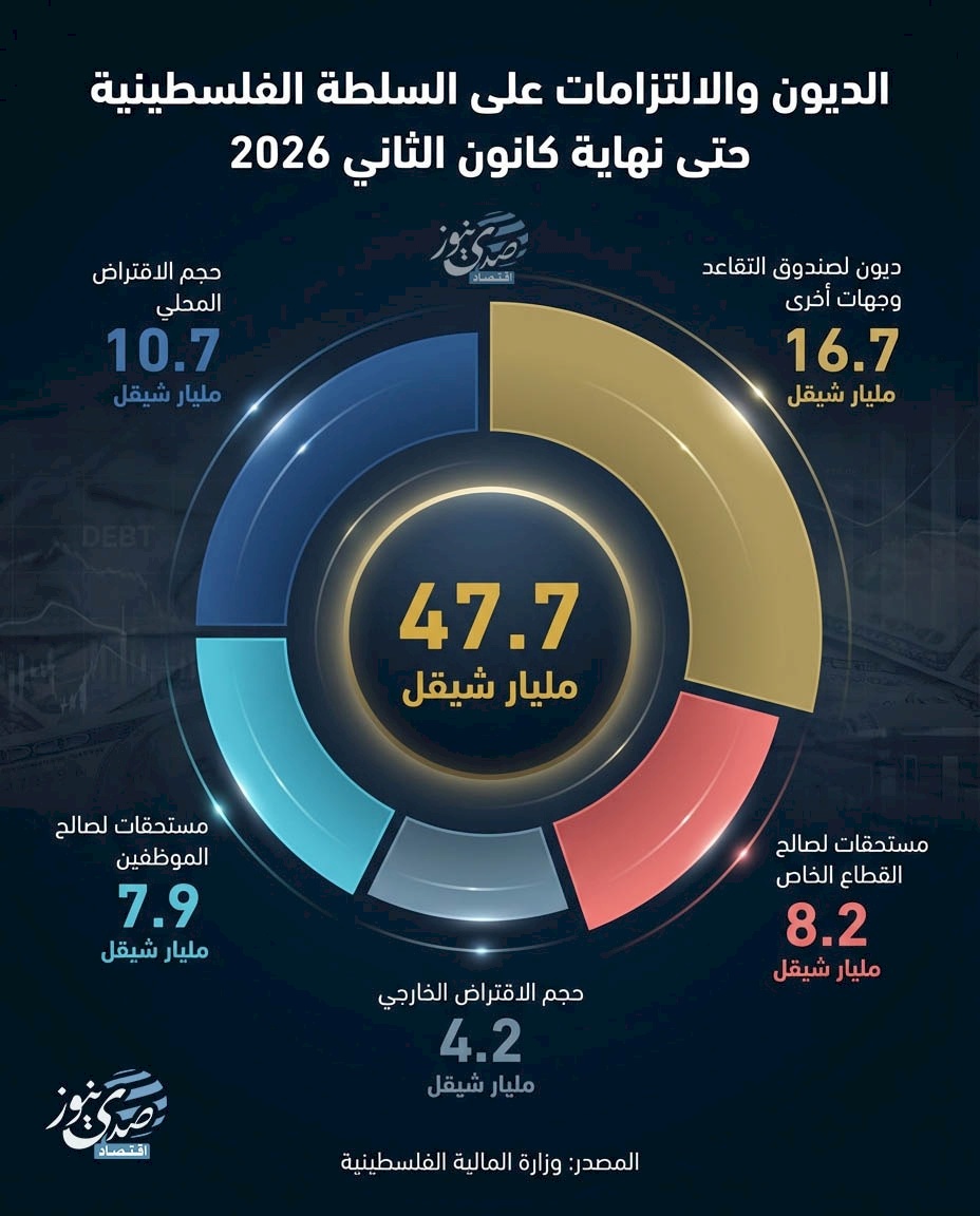 الديون والالتزامات على السلطة الفلسطينية حتى نهاية كانون الثاني 2026