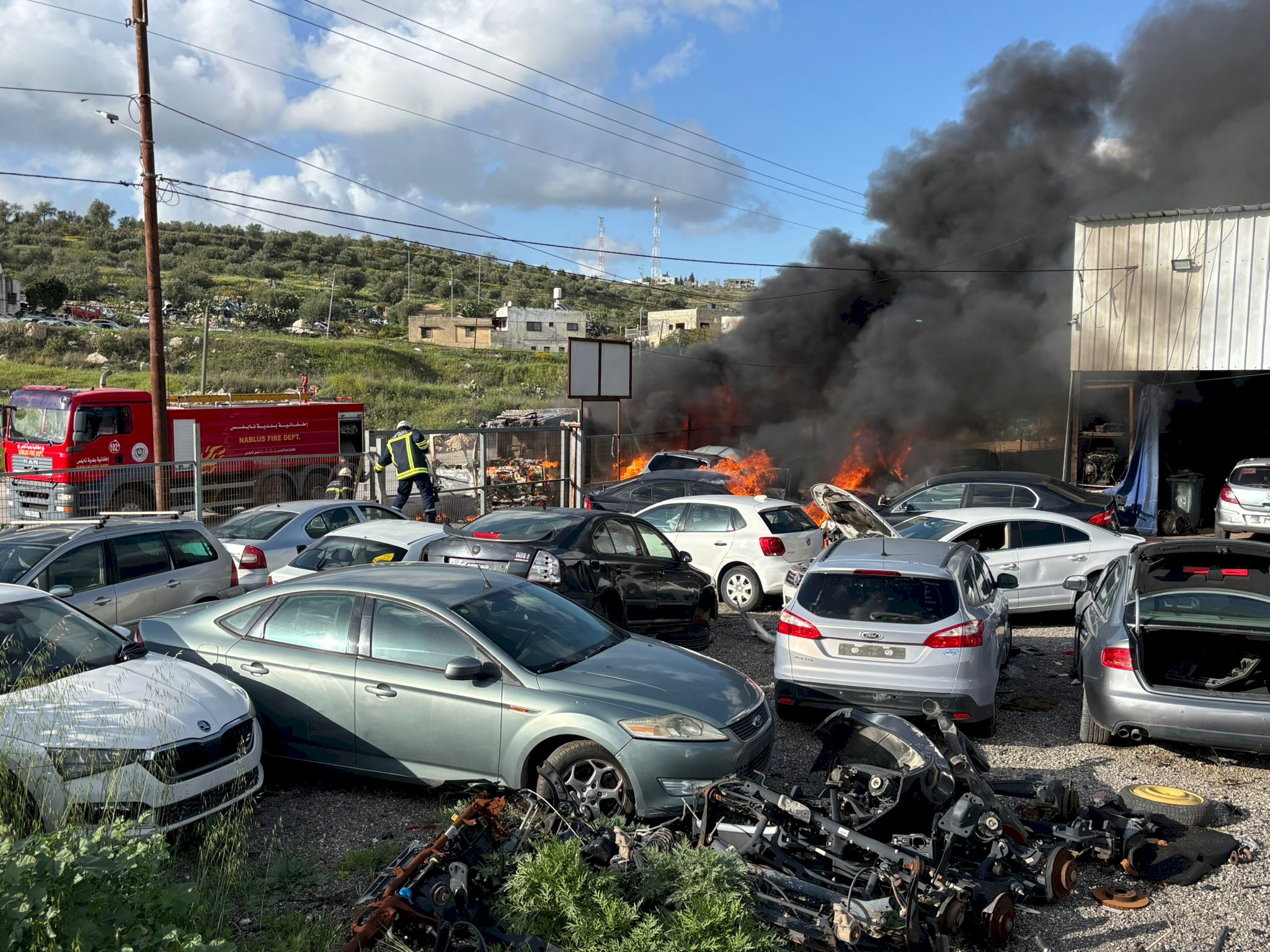 SadaNews - Colonizers set fire to a tourist tent and part of a vehicle workshop in various areas northwest of Nablus this evening, Sunday.
