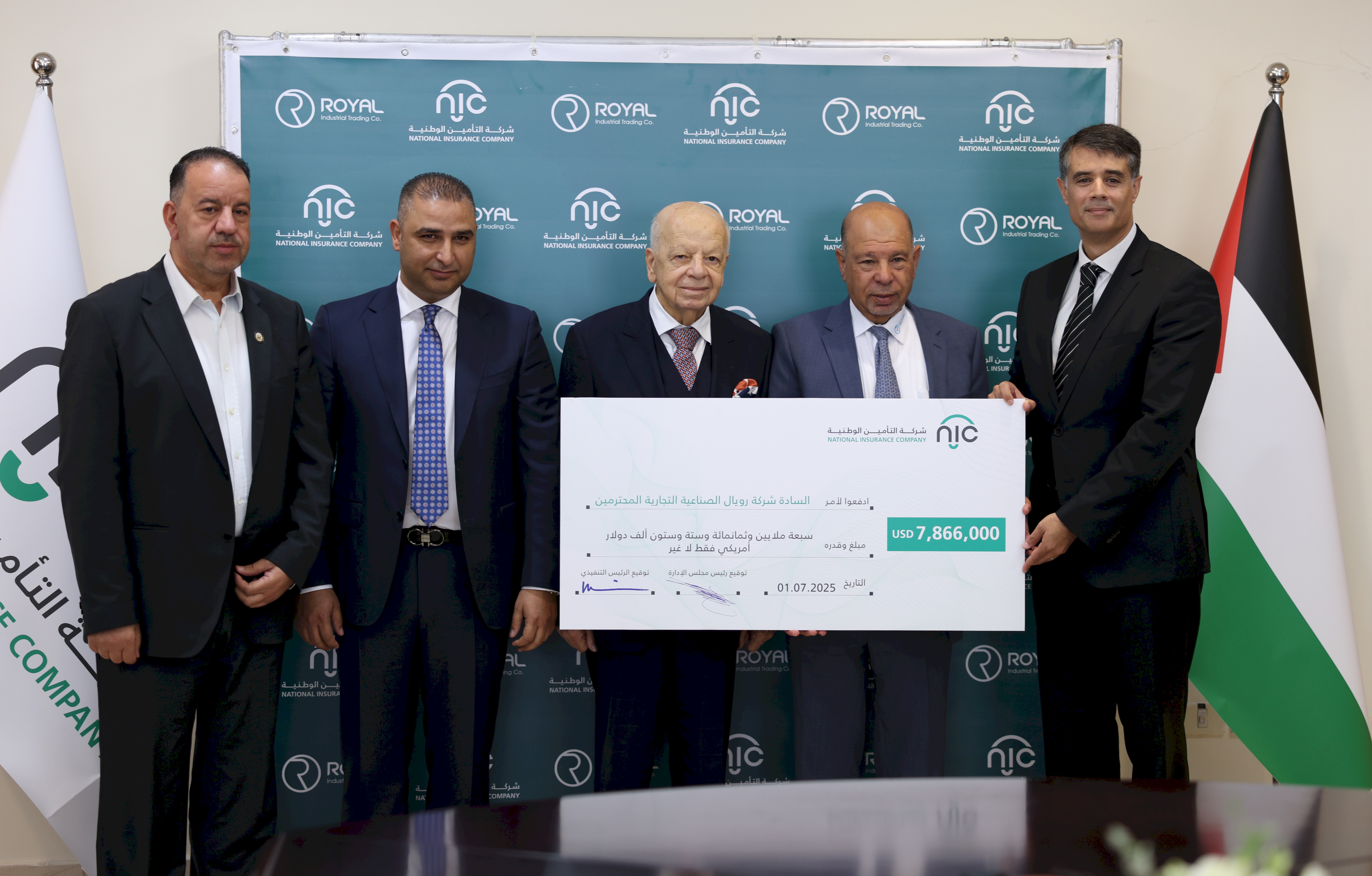 סדה ניוז - במהלך חסר תקדים המראה את עמידות המרכז הפיננסי שלה והובלתה בשוק הביטוח, הודיעה חברת הביטוח הלאומי על תשלום פיצוי היסטורי לחברת רויאל התעשייתית - חברון, בסכום של כ-8 מיליון דולר אמריקאי (7,866,000 דולר), ובכך רושמת את הפיצוי הגדול ביותר בהיסטוריה של שוק הביטוח הפלסטיני, ואחד מהפיצויים הגדולים ביותר באזור.
