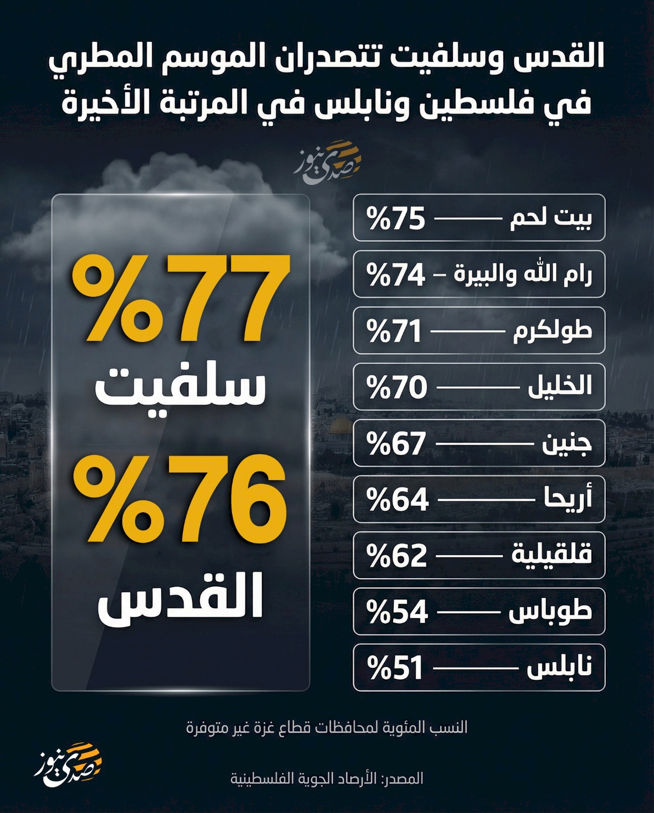אינפוגרפיקה: ירושלים וסלפי בראש עונת הגשמים בפלסטין.. ונצרת במקום האחרון