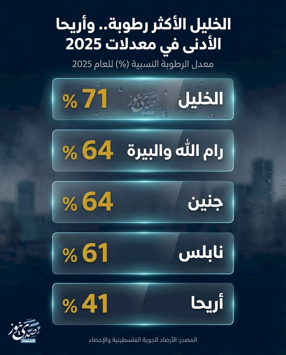 אינפוגרפיקה: חברון היישוב הלח ביותר.. יריחו הנמוך ביותר במעלות 2025