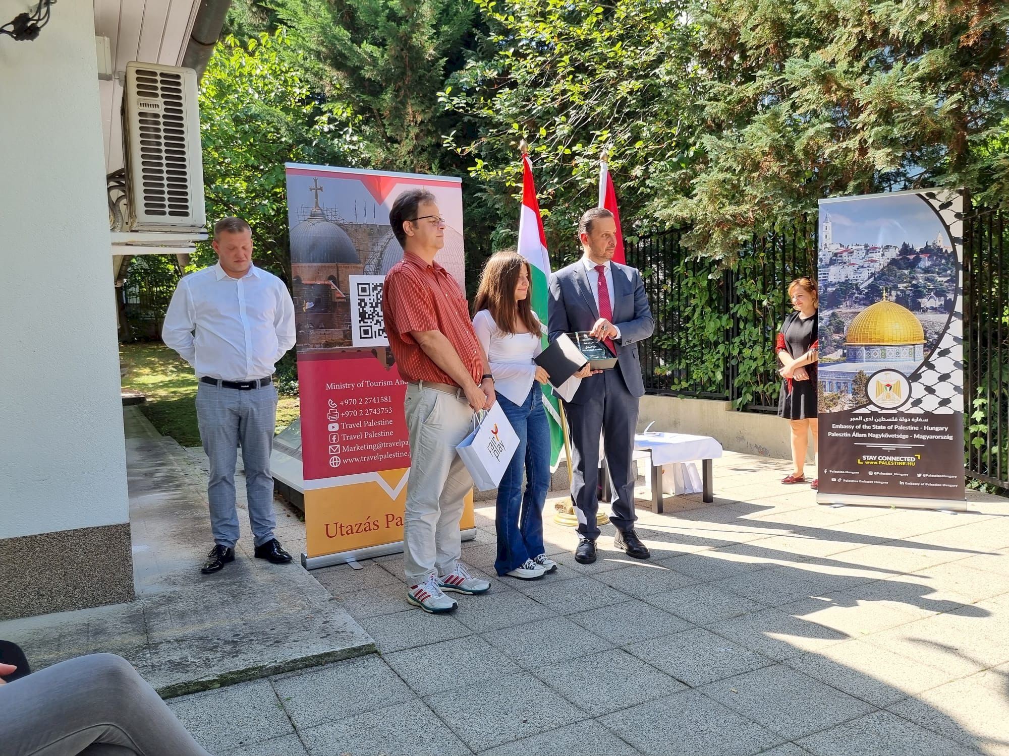 صدى نيوز - بمشاركة السيد جابور ديريجن ممثل اللجنة الدولية للعب النظيف Fair Play، وبحضور عضو المجلس الوطني الفلسطيني الأخ مروان السلطي وأمين سر حركة فتح في المجر الأخ منير السلطي والرئيس الفخري للجالية الفلسطينية الأخ نبيل ملحم، ورئيس الجالية الأخ غالب محاريق وعضو الهيئة الادارية للجالية الأخ عبد الاله فرج، كرمت سفارة دولة فلسطين عدد من الرياضيين المجريين من أصول فلسطينية.