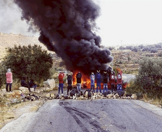 كما اغلق الشبان طريق رام الله نابلس المحاذي لمخيم الجلزون بحاويات القمامة والاطارات المشتعلة.