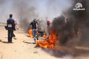 وبدأ الشبان المتظاهرون بتجميع الاطارات المطاطية لحرقها على طول الحدود الشرقية لقطاع غزة وذلك لمنع لقناصة من استهداف المتظاهرين وتشتيت الرؤيا عليهم بدورها عززت قوات الاحتلال الاسرائيلي من تواجدها على طول الحدود الشرقية لقطاع غزة.