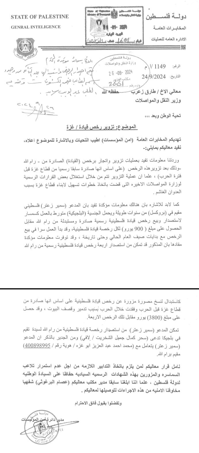 وفي إطار الإجراءات التنظيمية، قرر رئيس الوزراء الفلسطيني، محمد مصطفى، يوم السبت، تكليف وزير الأشغال العامة والإسكان، عاهد بسيسو، بتسيير أعمال وزارة النقل والمواصلات إلى حين صدور قرار جديد. وأكد مصطفى على ضرورة تنفيذ جميع أحكام هذا القرار من قبل الجهات المختصة.