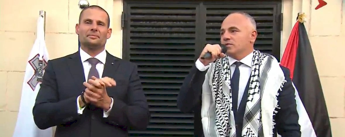 رئيس وزراء مالطا يشارك السفير حنانيا في مراسم رفع العلم في سفارة دولة فلسطين