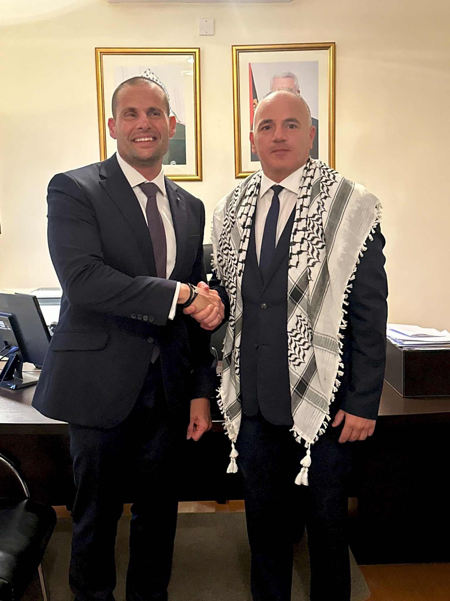 صدى نيوز - شارك رئيس وزراء جمهورية مالطا د. روبيرت ابيلا، سفير دولة فلسطين لدى مالطا فادي حنانيا في مراسم رفع علم فلسطين في سفارة دولة فلسطين لدى مالطا، بحضور رئيس البرلمان ووزراء الثقافة والتراث والحكم المحلي، ورؤساء كافة الأحزاب السياسية، وروؤساء وزراء وروؤساء جمهورية سابقين، وأعضاء البرلمان، وممثلين عن مؤسسات المجتمع المدني ورؤساء الجامعات وأكادميين وممثلي الكنائس وإمام مالطا، والسفراء العرب والأجانب ودبلوماسيين، وحشد كبير من المتضامنين المالطيين والأجانب وأبناء الجاليات.