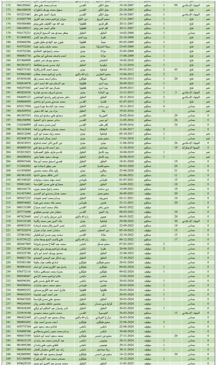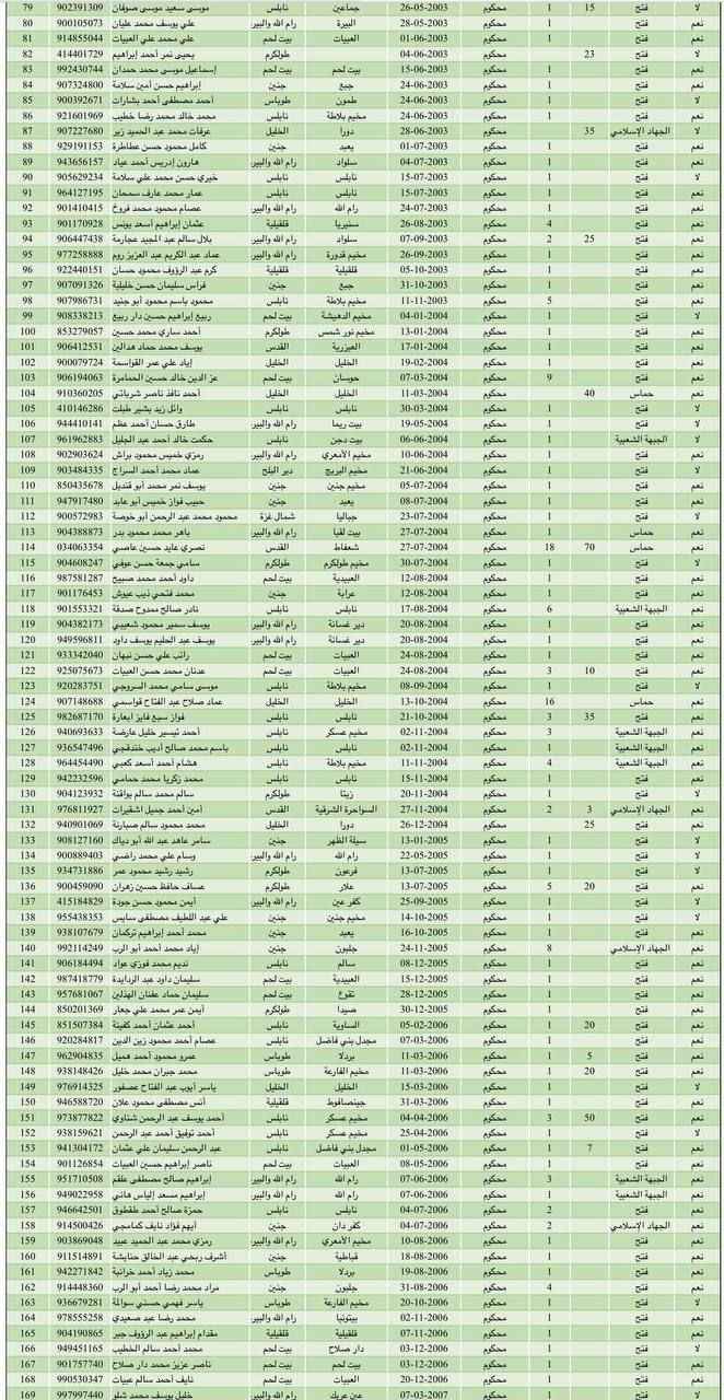 قائمة أسماء الأسرى في الدفعة الثالثة