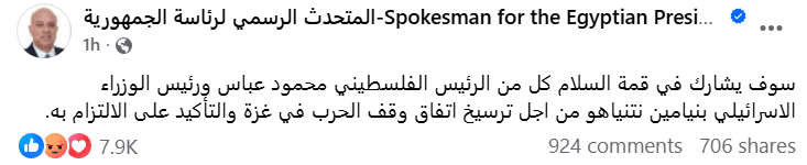 جاء البيان الرسمي الإسرائيلي رغم إعلان الرئاسة المصرية أن الرئيس الفلسطيني محمود عباس ورئيس الوزراء الإسرائيلي بنيامين نتنياهو سيشاركان في قمة السلام الدولية التي تستضيفها مدينة شرم الشيخ اليوم الاثنين.