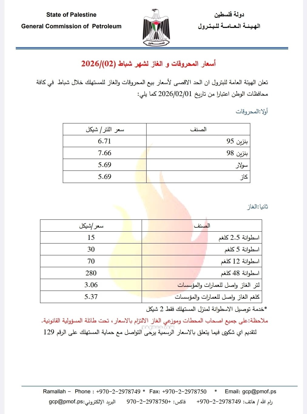الإعلان عن أسعار المحروقات لشهر شباط 2026