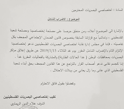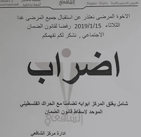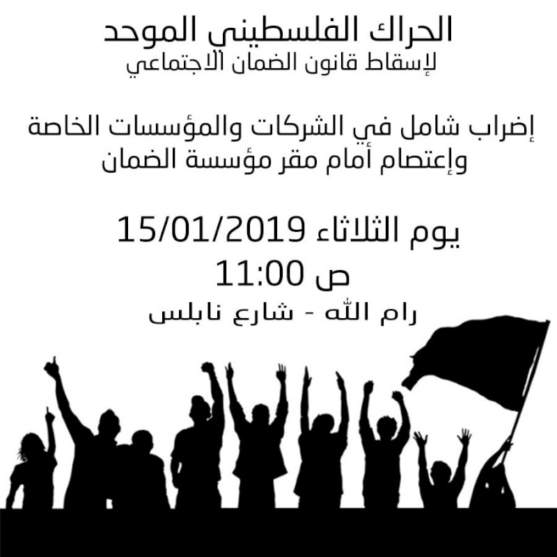 وفي هذا الاطار اعلنت العديد من القطاع الخاص الاضراب الشامل يوم غد الثلاثاء للمشاركة في الاضراب الذي دعا اليه الحراك الفلسطيني الموحد لاسقاط قانون الضمان الاجتماعي.