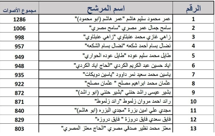 رام الله - صدى نيوز -أعلنت لجنة الانتخابات المركزية لإدارة انتخابات الغرف التجارية الصناعية، مساء اليوم، نتائج انتخابات غرفة تجارة وصناعة نابلس.