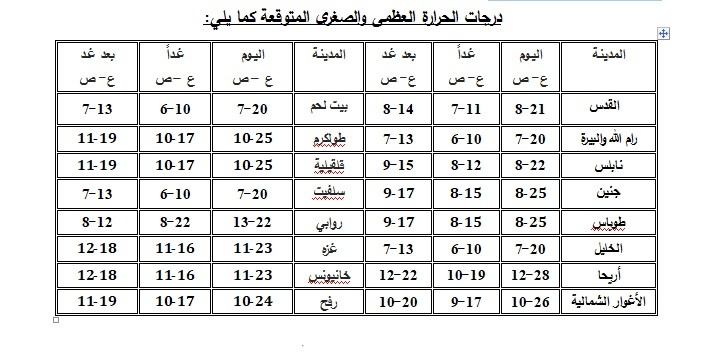 وتوقعت دائرة الارصاد ان تعود الاجواء الجمعة الى الارتفاع في درجات الحرارة مع بقاء الجو باردا ،وتبقى الفرصة مهيأة لسقوط أمطار متفرقة فوق بعض المناطق.