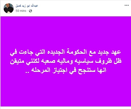 منشور لعضو المجلس الثوري عبد الله كميل على صفحته فيسبوك: