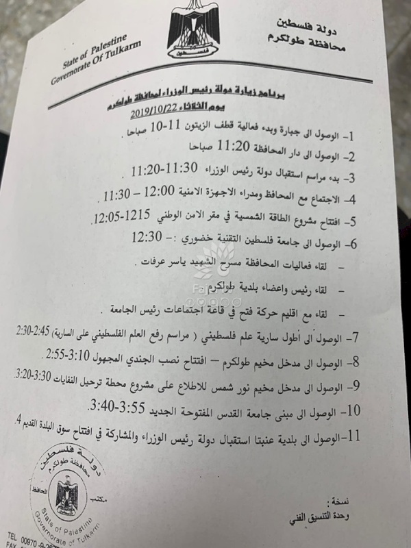 وتابع مكتب رئيس الوزراء في بيان له وصل صدى نيوز نسخة عنه: ان اشتية سيجتمع مع محافظ طولكرم ومدراء الاجهزة الامنية.