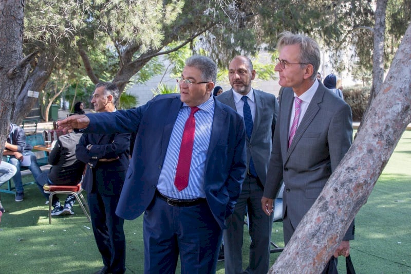 من جانبه، أشاد السيد "بيرند دونزلاف" ببرامج الجامعة المتطورة التي تعتمد على الجانب العملي في تطبيقها، بالإضافة إلى العلاقة التي تربط الحكومة الألمانية بمؤسساتها وجامعاتها بجامعة القدس، معبراً عن الرغبة في توطيد العلاقة لدعم التعليم والطلبة.