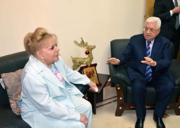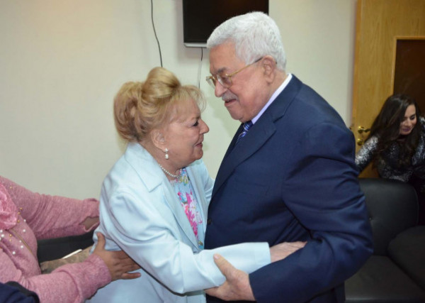 وقام بمنحها آنذاك وسام "نجمة فلسطين" تقديراً لإسهاماتها طوال مسيرتها الفنية في دعم القضية الفلسطينية، كما علق الرئيس الفلسطيني على صورة للنجمة الكبيرة مع الرئيس الفلسطيني الراحل ياسر عرفات، والتي تحتفظ بها ضمن مقتنياتها في غرفتها بالمستشفى، مبدياً سعادته بها.