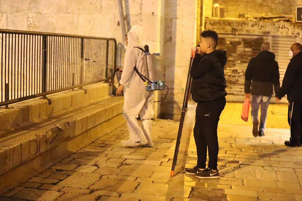 صدى نيوز: شرع شبان مقدسيون، الليلة الماضية، بتعقيم شوارع وأزقة البلدة القديمة في القدس المحتلة.