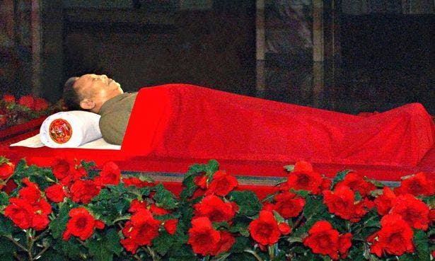 وفي الصورة التي تم تداولها بشكل كبير يمكث الزعيم مستلقيا على ظهره، ورأسه مسنود بوسادة، وغطى جسده غطاء أحمر، فهل مات الزعيم فعلاً.