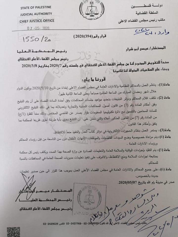 انتظام العمل في المحاكم اعتبارا من يوم الاحد القادم 10 أيار