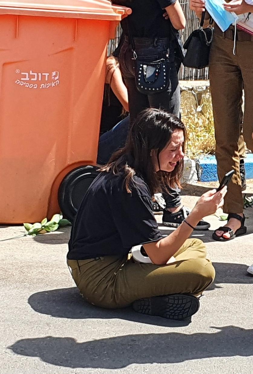 ونشر نشطاء في اسرائيل صورا لصديقة الجندي الذي قتل في بلدة يعبد وهي تبكي بعد سماع نبأ مقتله خلال نشطاء عسكري.