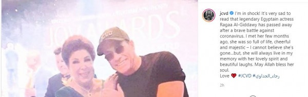 صدى نيوز: نعى النجم العالمي البلجيكي جان كلود فان دام، الفنانة الراحلة رجاء الجداوي من خلال حسابه الرسمي على موقع انستجرام.