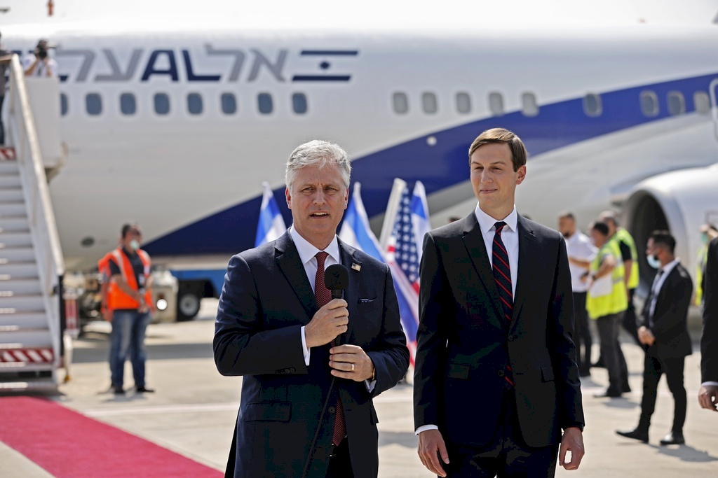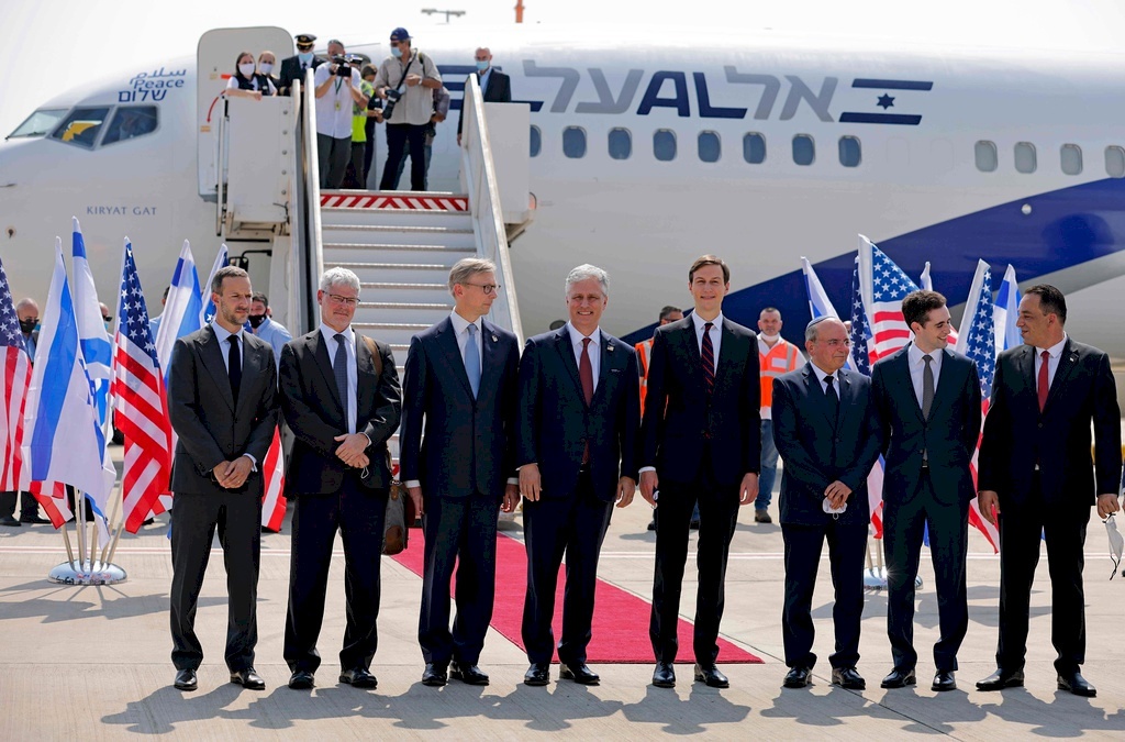 وضم الوفد الأميركي كبير مستشاري الرئيس دونالد ترامب وصهره جاريد كوشنر، بالإضافة إلى مستشار الأمن القومي روبرت أوبراين، ومبعوث الشرق الأوسط آفي بيركويتز، ومبعوث واشنطن إلى إيران، برايان هوك.