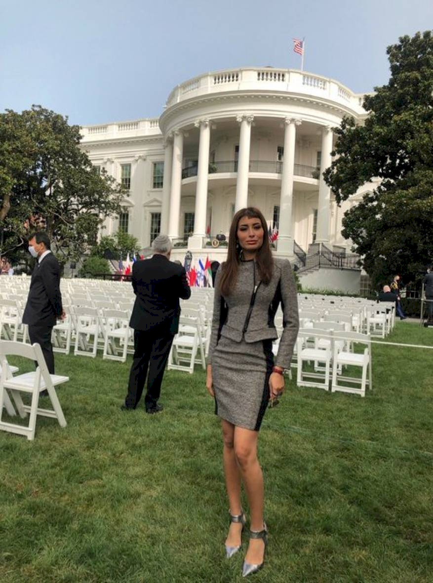 وعلقت ملكة جمال العراق للعام 2017، على صور أخرى جمعتها بالمبعوث الجديد لدولة الاحتلال لدى الأمم المتحدة جلعاد إردان، بأنه "يوم تاريخي في البيت الأبيض، حيث توقيع اتفاق السلام بين إسرائيل والإمارات والبحرين".