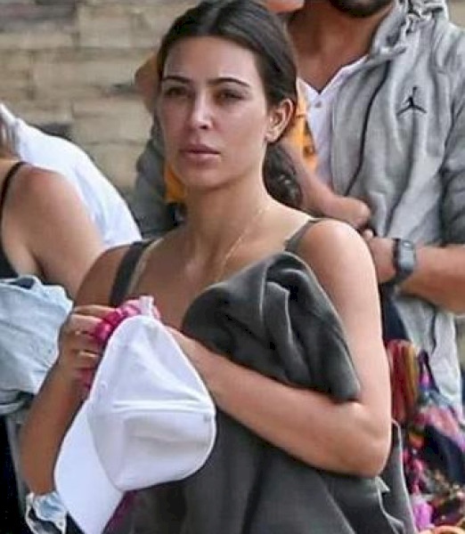 وظهرت كيم بدون مكياج بوجه شاحب يبدو عليه التعب وبشرة باهتة، وبدت الهالات السوداء ظاهرة حول عينها وكأنها لم تنم لساعات طويلة.