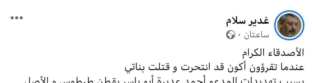 صدى نيوز: قبل أن يُقدم على قتل بناته وينتحر في مدينة طرطوس السورية، كتب مدرس رياضيات عبر صفحته الشخصية الأسباب التي دفعته لذلك، ومنها أنه تلقى تهديدات بقتل أسرته وحرقها.