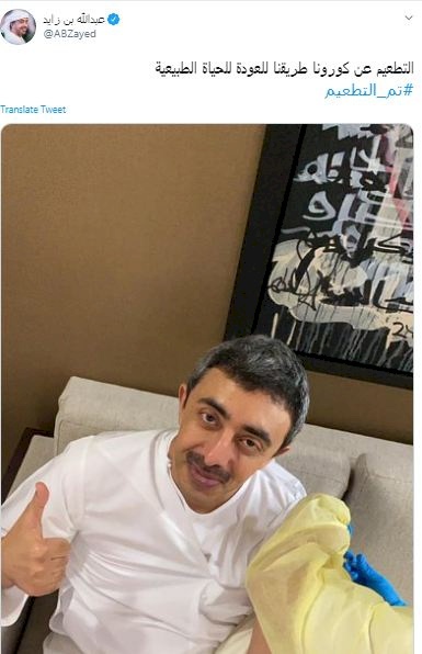 عبد الله بن زايد يتلقى لقاح كورونا تمهيدا لتعميمه في الإمارات