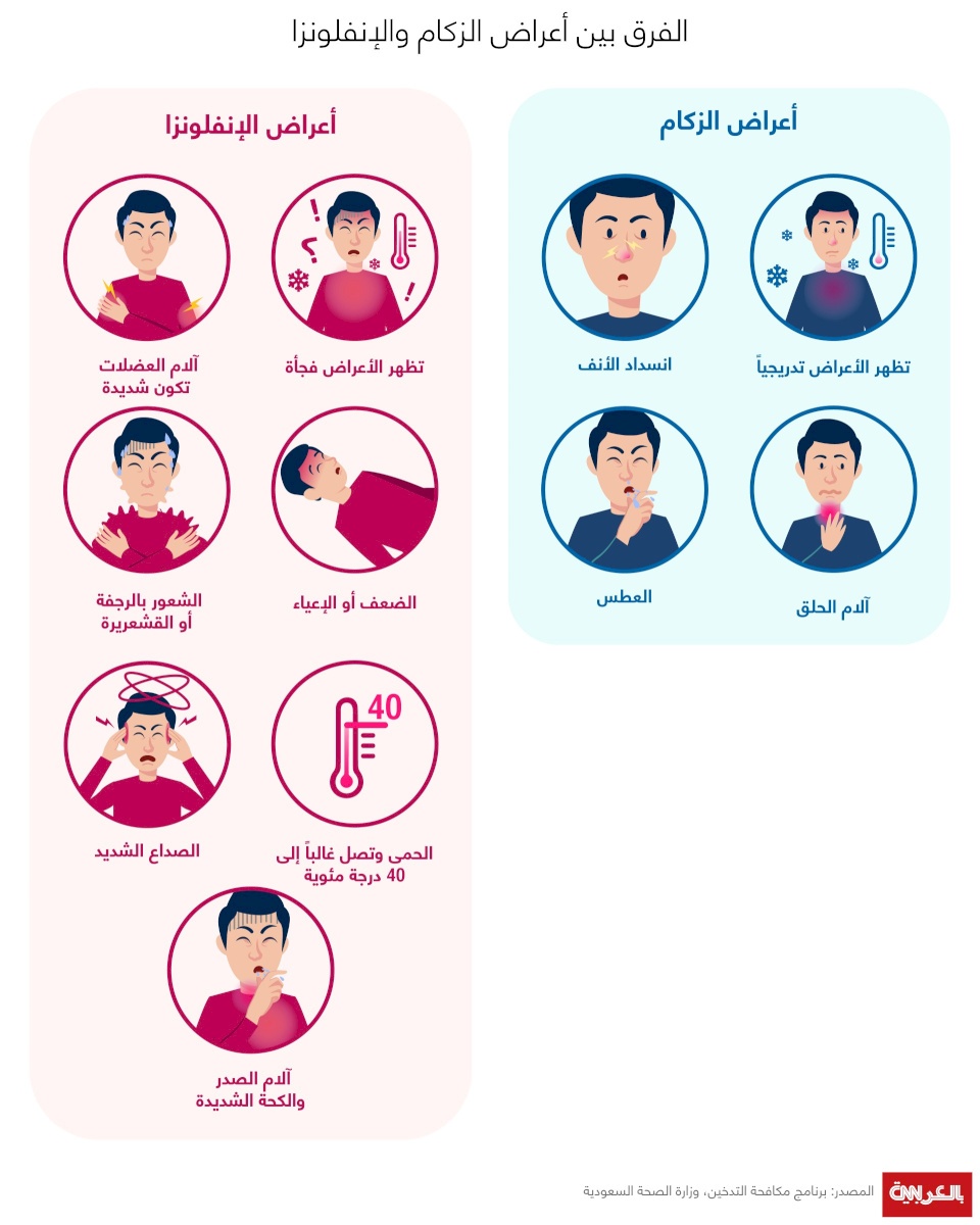 صدى نيوز: نشر المركز الوطني للوقاية من الأمراض ومكافحتها في السعودية، عبر حسابه الرسمي على موقع "تويتر"، مجموعة من الأعراض التي ستوضح لك الفرق بين كليهما.