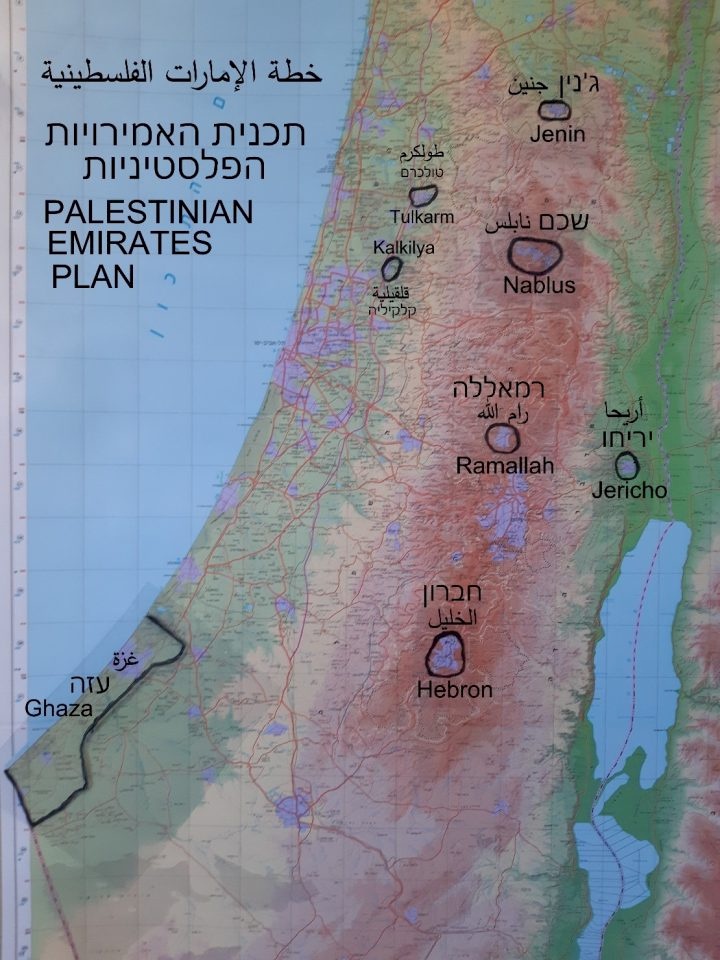 وشرح قائلا: "فكرة الإمارات الفلسطينية المتحدة تسعى إلى إقامة إمارة مستقلة في كل من المدن بالضفة الغربية، بعد الإمارة القوية التي تأسست عام 2007، في حين سوف تبقى إسرائيل في المناطق الريفية إلى الأبد، وستقوم كل إمارة في مناطق الضفة الغربية على أساس العشائر المحلية التي تعيش في المدينة، في حين سيكون شيوخ العشائر مصدر السلطة السيادية لجميع هذه الإمارات مع بعضها البعض".وأوضح أن "الإمارات الفلسطينية المتحدة التي ستكون في مدن الضفة الغربية هي: جنين ونابلس وطولكرم وقلقيلية ورام الله وأريحا وغرب الخليل، بالإضافة إلى قطاع غزة، من خلال اتفاقيات ثنائية بينها وبين إسرائيل، وفي هذه الحالة ستمارس سيادتها في المناطق الريفية خارج الإمارات، وستمنح الجنسية الإسرائيلية للقرويين الفلسطينيين".