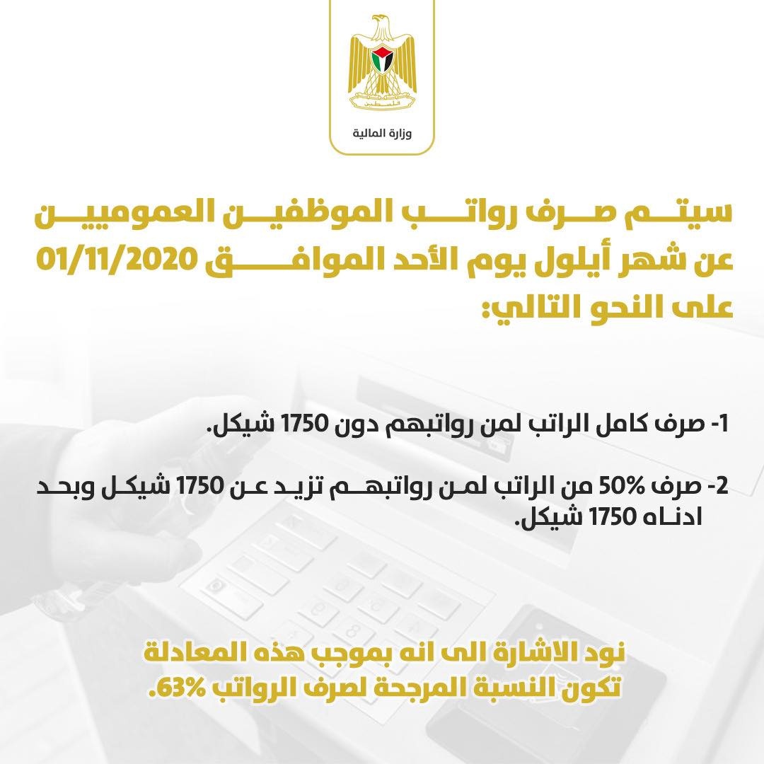 صدى نيوز: أعلنت وزارة المالية أنه سيتم صرف 50% من رواتب الموضفين عن شهر أيلول/ سبتمبر الماضي يوم الأحد المقبل.