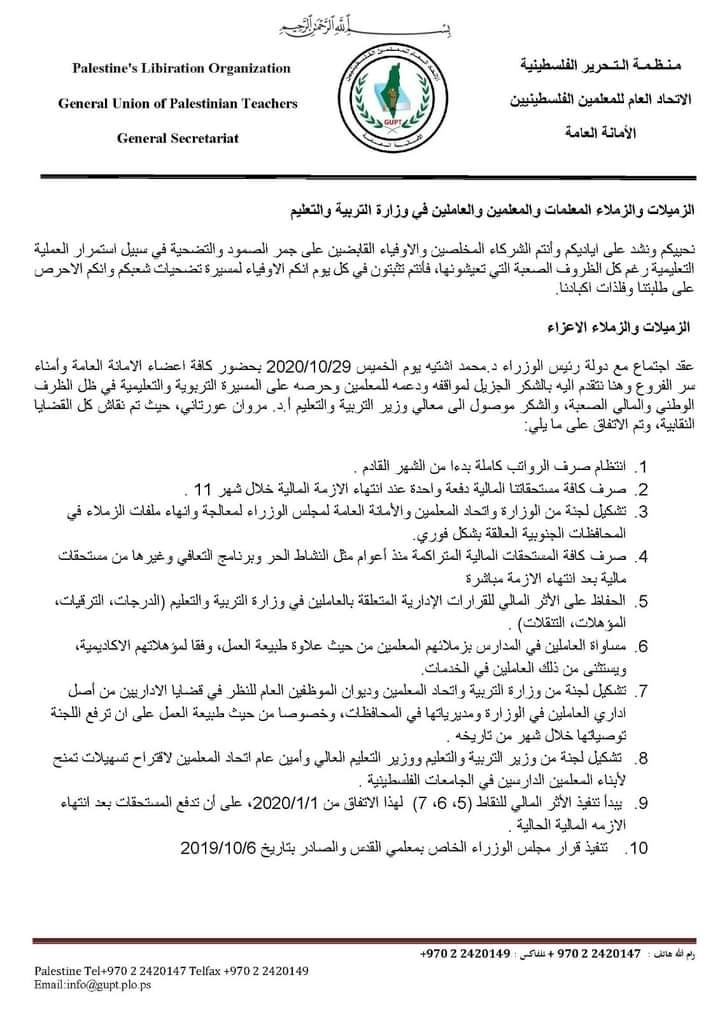 بدوره، قال اتحاد المعلمين إن تم الاتفاق على انتظام صرف الرواتب كاملة بدءاً من الشهر المقبل، ودفع جميع مستحقات المعلمين المتأخرة خلال الشهر المقبل.