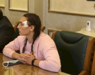 وكان الظهور الأول للاعبة خلال التحقيق الذي خضعت له مع باقي أطراف الأزمة بمقر اللجنة الأولمبية، وبحضور ممثلين عن وزارة الشباب والرياضة، وظهر على اللاعبة آثار الضرب المبرح الذي تعرضت له مع مدربها من جانب الطرف الآخر.
