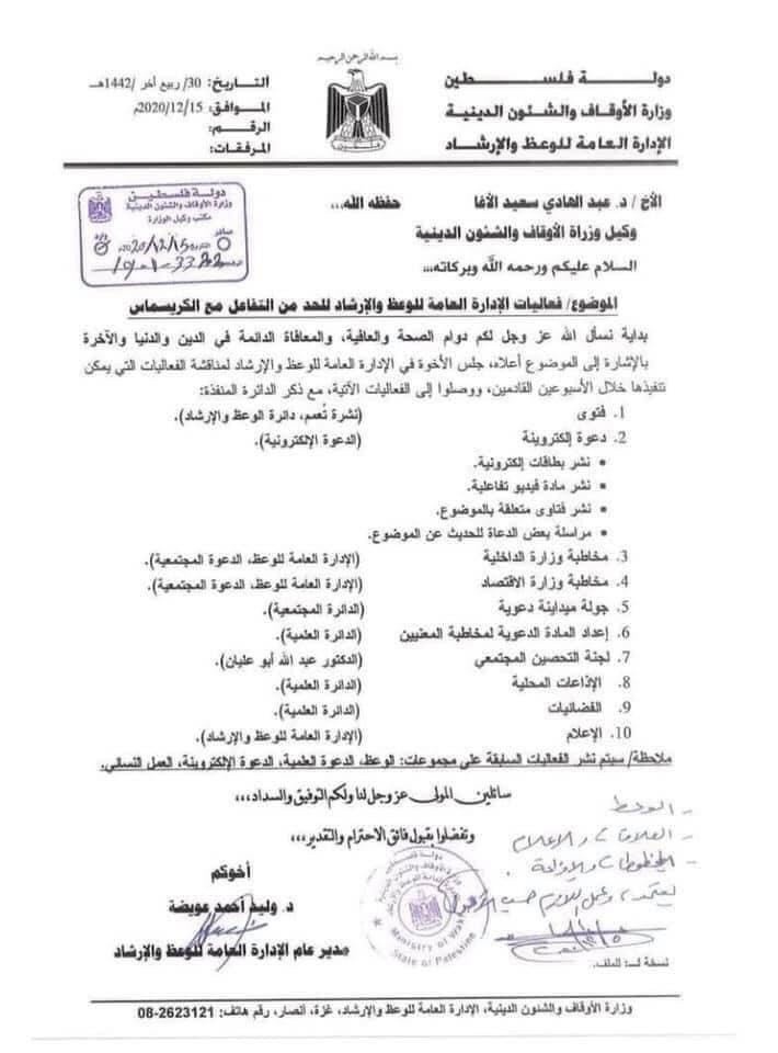 وأثار بيان صادر عن "الإدارة العامة للوعظ والإرشاد" التابعة لوزارة الأوقاف في غزة الجدل، بسبب دعوته إلى تنظيم العديد من الفعاليات للحد من "التفاعل مع الكريسماس"، تشمل إصداره ونشر فتوى ونشر مواد إعلامية بهذا الخصوص.