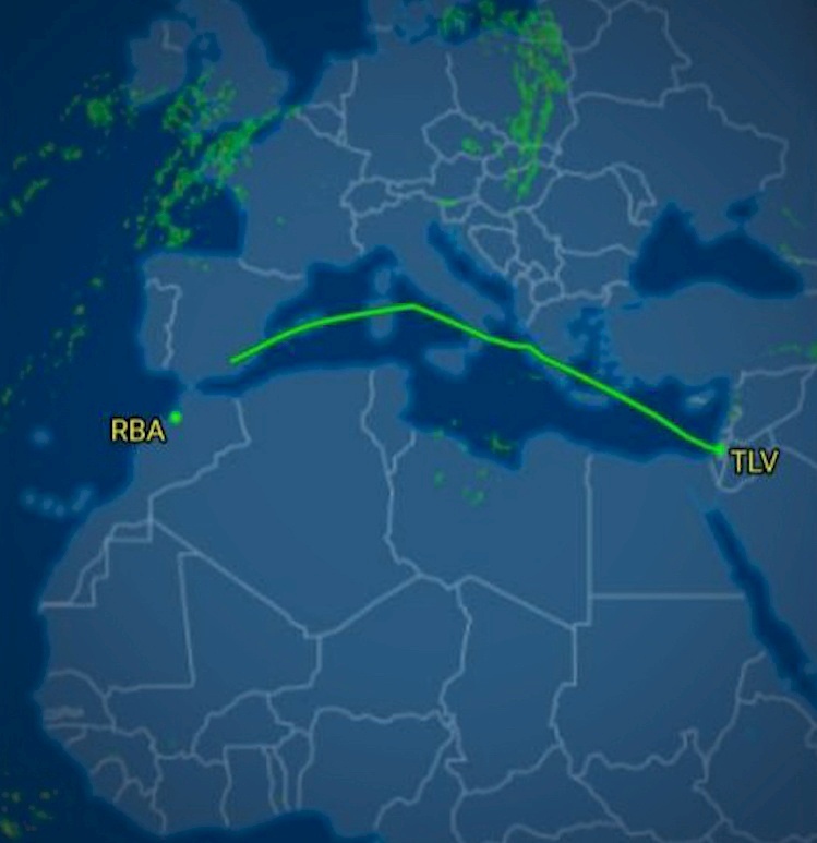 وذكرت وسائل إعلام تونسية أن الرحلة اتخذت مسارا شماليا يمر بالبحر الأبيض المتوسط عبر المجال الجوي اليوناني، ثم الإيطالي ومنه إلى الإسباني، وأخيرا إلى العاصمة المغربية، نظرا لإغلاق تونس والجزائر أجواءهما أمام الطيران الإسرائيلي.