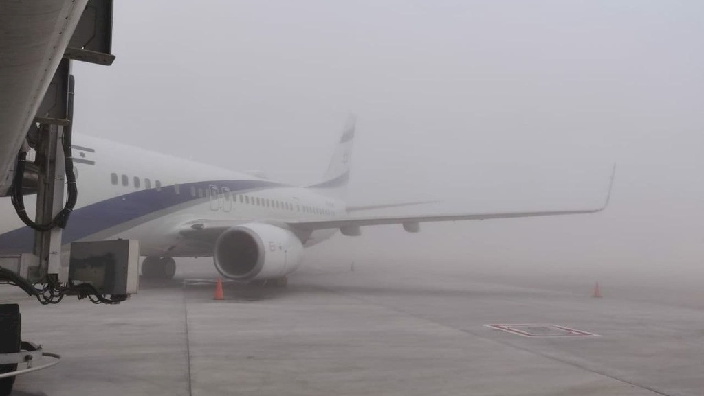 وقالت هيئة المطارات الإسرائيلية إنه "بسبب الظروف الجوية الحالية في منطقة مطار بن غوريون، والتي تشمل الضباب الكثيف وقصر الرؤية ، فإن الحقل مغلق للإقلاع والهبوط".