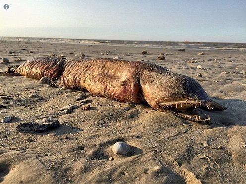 في موضوع ذي صلة، تعرف الخبراء الأمريكيون على كائن غريب ذي أسنان بارزة عثر مؤخرا على جثته على شاطئ تكساس وأتى به إعصار "هارفي" المدمر..
