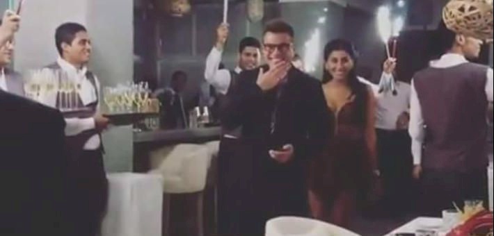 وظهرت دينا في المقطع وهي تحضر مع دياب الى داخل القاعة، وترقص على نغمات أغنيته الجديدة "الفرحة الليلة"، وسط دهشة دياب وتصفيق الحاضرين.
