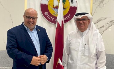 واشاد الدعليس خلال اللقاء بالجهود القطرية المبذولة ودور دولة قطر بكافة الاصعدة لخدمة الشعب الفلسطيني.