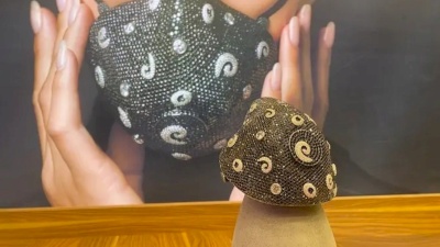 وتحتوي الكمامة التي أشعلت مواقع التواصل الاجتماعي، يوم أمس الأحد، على 3608 قطعة من الألماس الأبيض والأسود، ومن الذهب.
